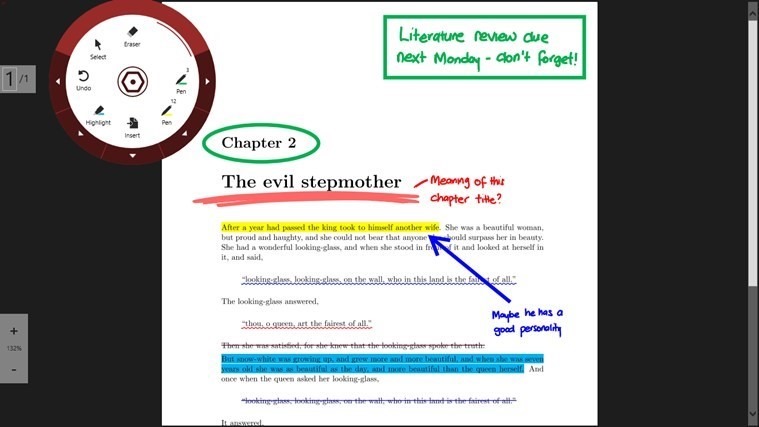 We are having a hard time to recommend the app given the fact that you can already annotate your PDF files in the built-in Reader App from Microsoft in Windows 8. However, this app has one thing going for it, the Radial Menu analogous to that of OneNote. The built-in Reader app misses this extensive menu and pen feature. So if reading PDF all day your thing, or a student that collects PDF files for your theses, this is the app for you.