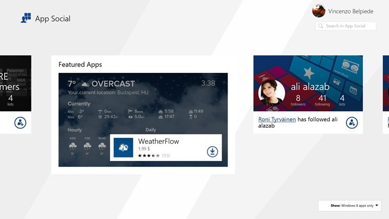 App Social: Discover, browse and share amazing apps both for Windows 8 and Windows Phone.