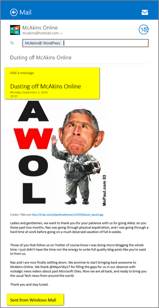 Of course this is a temporary solution till Automattic decides to update their WordPress client in the Windows Store. We just have to bear the little risk that if anyone hack your addressbook, they also have access to your site publications till you change the publish email address for your blog site.