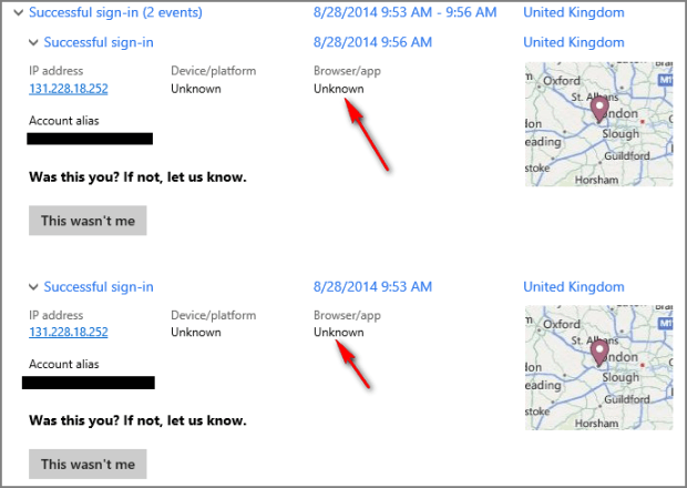 Now, I know for sure I wasn’t in UK on that day, as I was still on vacation somewhere else. Normally my line of work require that I use VPN connection to work, and accessing my MS Account during my VPN connection gives a skewed login location of my company central server location that is well known in my timeline, but on that Thursday I was off duty, and my VPN access is mostly somewhere else totally.