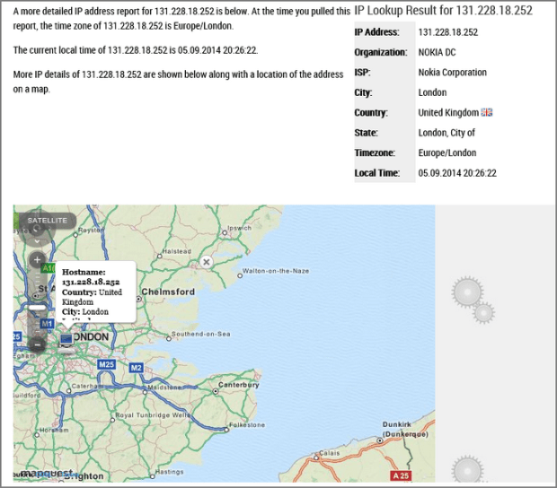 So I did what a normal InfoSec person would do, I went to IPAddress.com for the WHOIS info of the IP address and my bacon was stolen! I have been hacked from Nokia HQ UK!