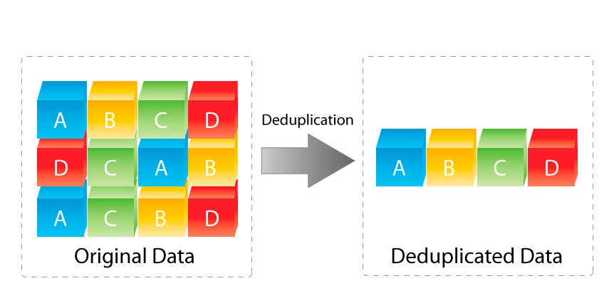 Now the clever heads of the Data Storage world have found out that if you look at these files at chuck level, a lot of the small pieces that make up the files really are more or less alike binary wise. So why not hash these chunks or blocks with unique values, and save them to disk while keeping a table of all the hashes. So next time as a job seeker when you want to save that letter with Dear Sir, we can find out that you’ve already writing a thousand solicitation letter beginning with Dear Sir, so we just throw that part away and save only what we don’t have in the Hash table. I.e. We only save every data once! Think of the storage savings!