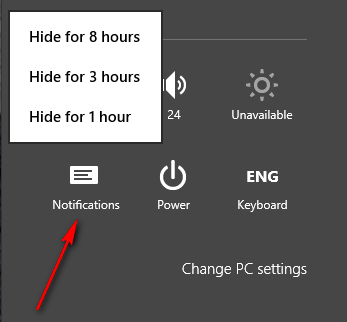Now that we have Windows 10, we get the advantage of Windows 7 on desktop devices, but we loose the ease of use of Windows 8 UX. For example, you’re in a meeting giving a presentation, or a Conference Call and you want to limit the noise from your device. Before you just open charms and set Notification to mute for a number of hours.