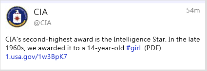 I have been following the CIA tweeter handle from day one as I was curious to know what the secretive and for-your-eyes-only agency has to tell the public. I was not disappointed, they’ve been tweeting declassified information from their archives and it has been an eye opening and interesting read up till now (Skyhook anyone?).