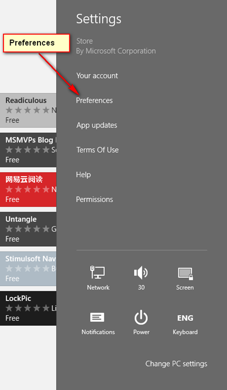 But if you are a Geek, your life is on the Net and you don’t want to be limited to local Apps only, that is where frustration begins. There are more Apps in English than Localized versions, but if you installed Localized version of Windows you wont see all those Apps. Luckily Microsoft thought of people like you. There is a settings in Windows 8 Store to allow you to see All Apps in the Store, except for those specifically banned for your Region.