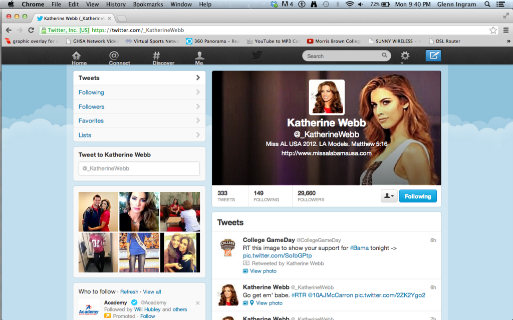 Previous Image Next Image McCarron-girlfriend-beginning AJ McCarron’s girlfriend’s Twitter account page just after she received her 15 seconds of fame Sharing is a part of being humanTweet Email a link to a friend (Opens in new window) Email Like Loading...